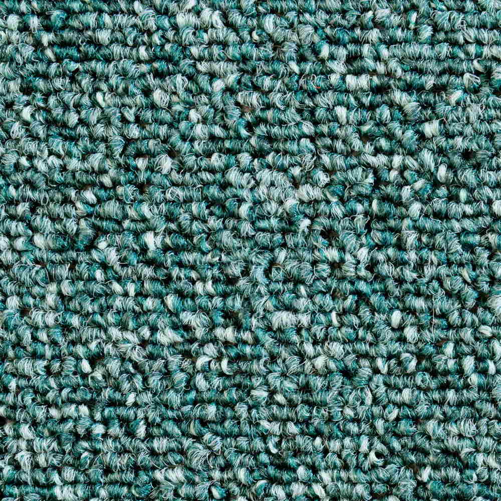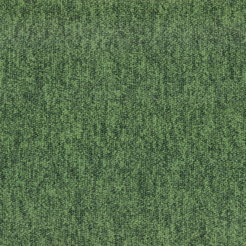 The carpet tile has a tufted loop pile with a solid and basic pattern.